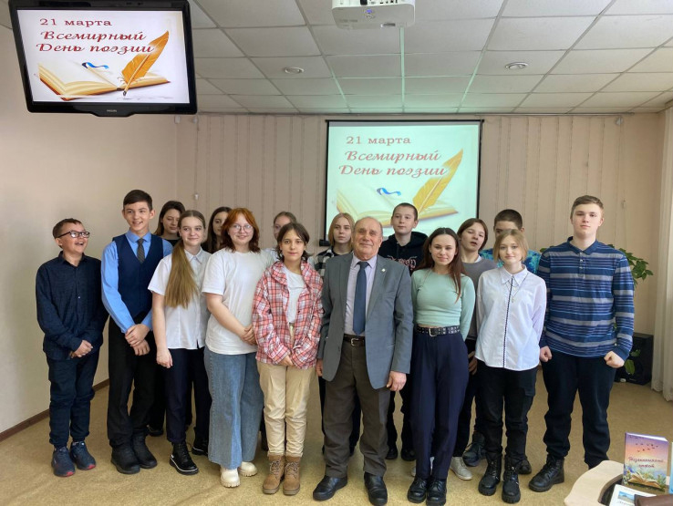 21 марта, во Всемирный день поэзии, для учащихся 8 класса СОШ№1 прошла творческая встреча «Наш поэт» с Воропаевым_Александром_Андреевичем – поэтом клуба «Родник_души». Александр Андреевич рассказал ребятам о своём детстве, об учёбе и о том, как судьба его занесла в Колыванский район. В стихах он отразил все этапы своей жизни: детство, школу, семью, войну и любовь.