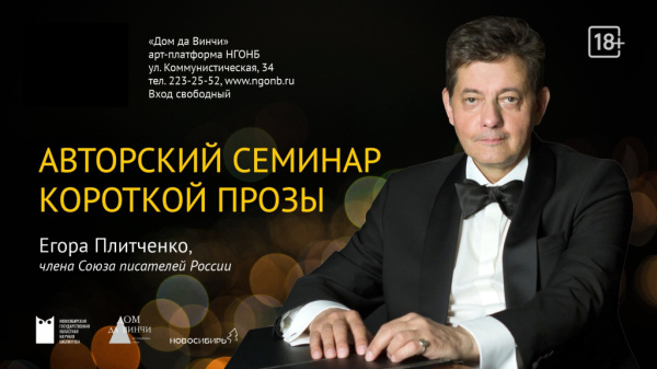 23 ноября в 15:00 на арт-платформе НГОНБ «Дом да Винчи» (ул. Коммунистическая, 34) cостоится семинар короткой прозы «Книги из огня» под руководством члена Союза писателей России Егора Плитченко.