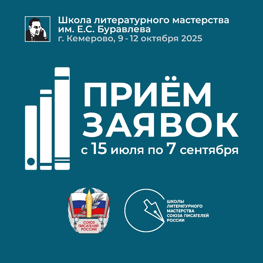 С 15 июля по 7 сентября идёт заявок на участие в Школе литературного мастерства имени Евгения Сергеевича Буравлёва, которая пройдёт в столице Кузбасса с 9 по 12 октября 2025 года.