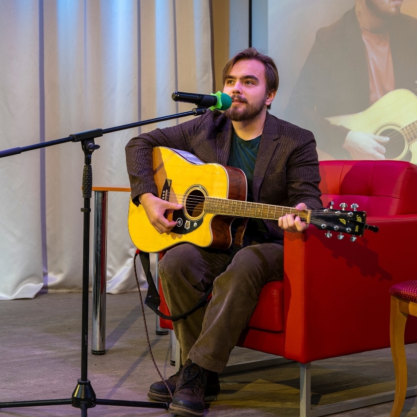 14 ноября в Областной молодежной библиотеке магистрант НГУ представил сольную программу стихов и песен «На планете по имени Осень».