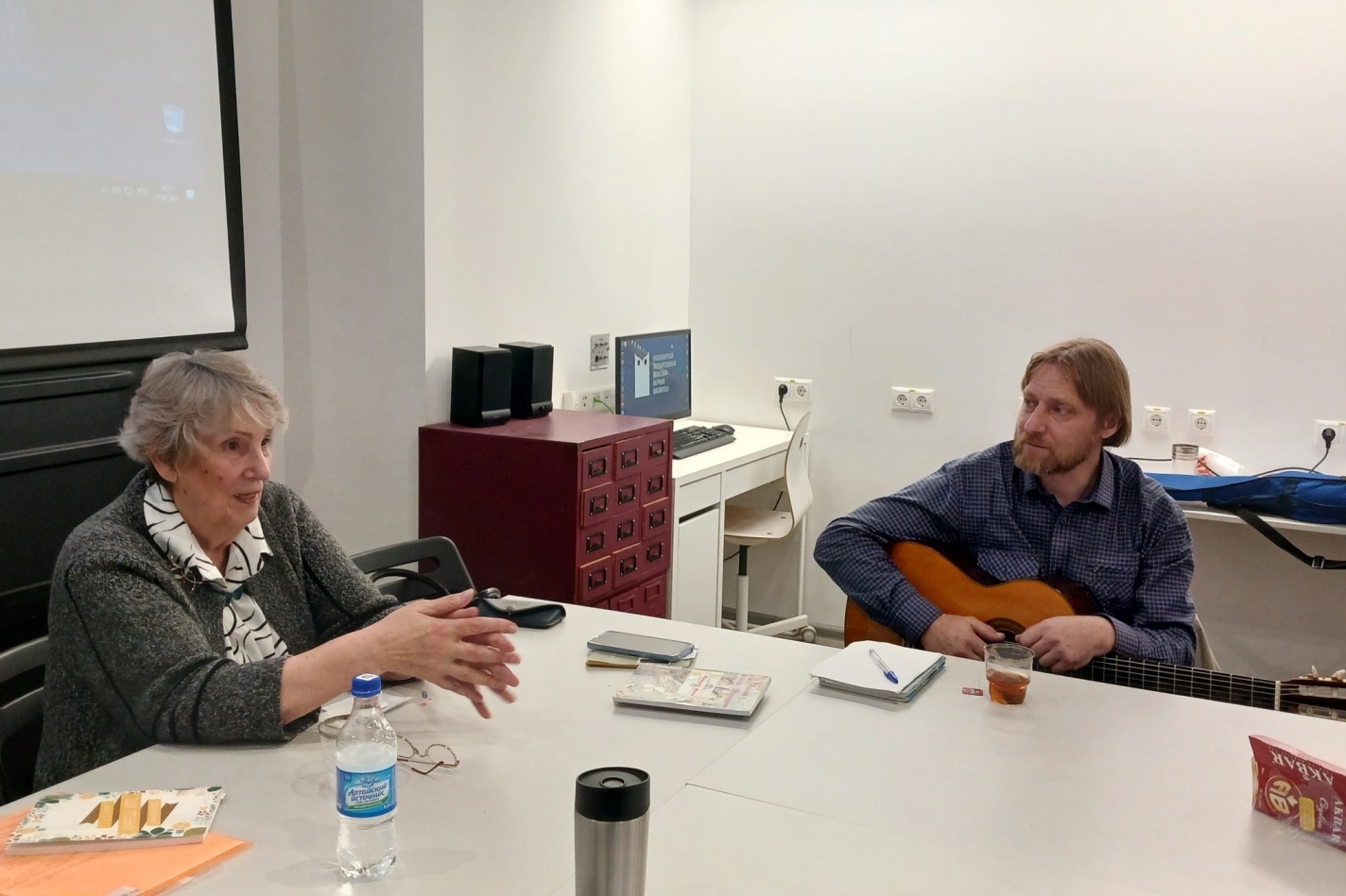 Завершили встречу видеороликом с песней «Корабли, поплутав, возвращаются в гавани». Это видео записали в 2013 году, когда Евгений Фёдорович впервые приезжал на встречу с читателями в библиотеку имени Ахматовой.