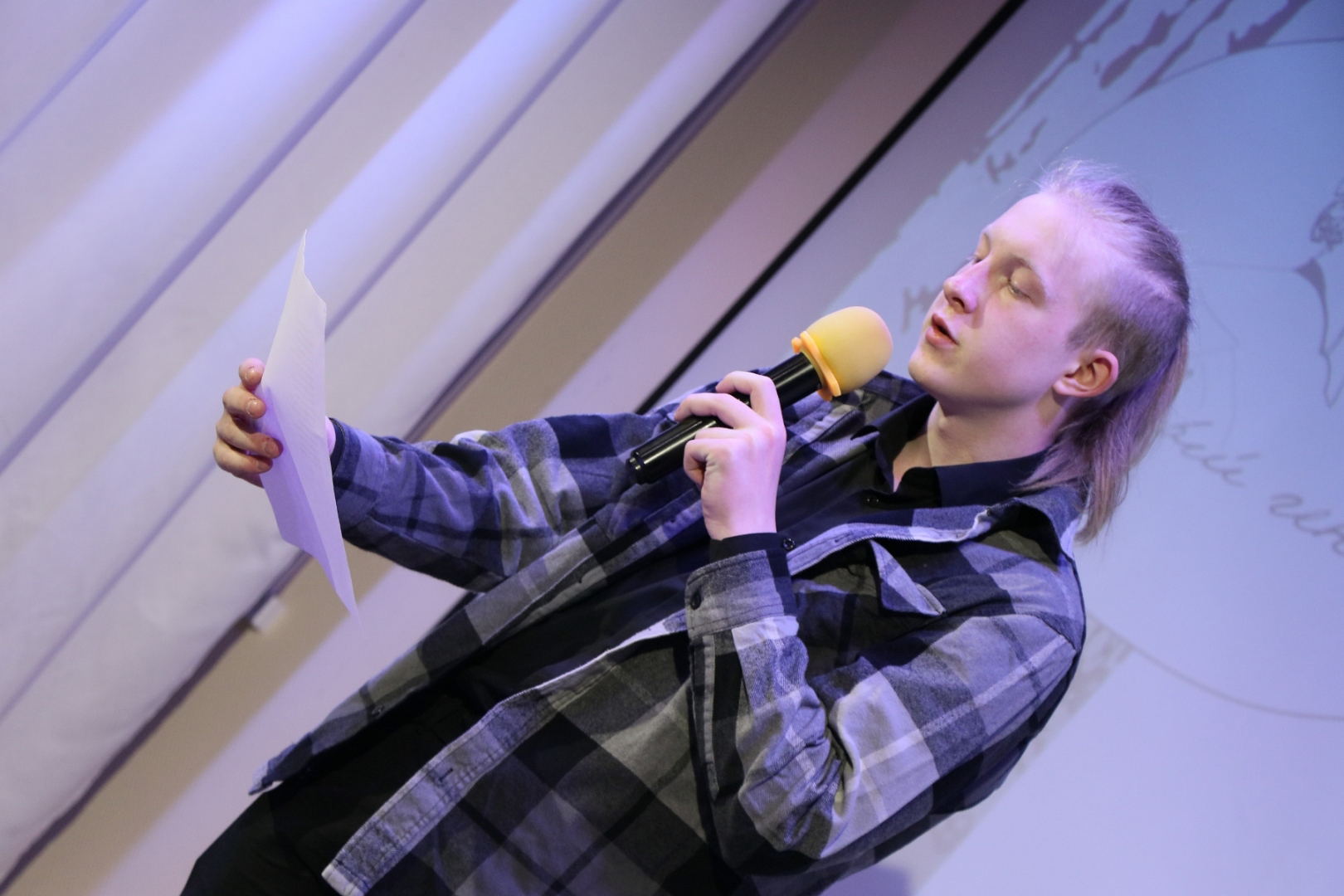 Участников конкурса также поприветствовал молодой поэт Антон Зоркальцев, который рассказал о своём творческом пути и прочёл несколько стихотворений.
