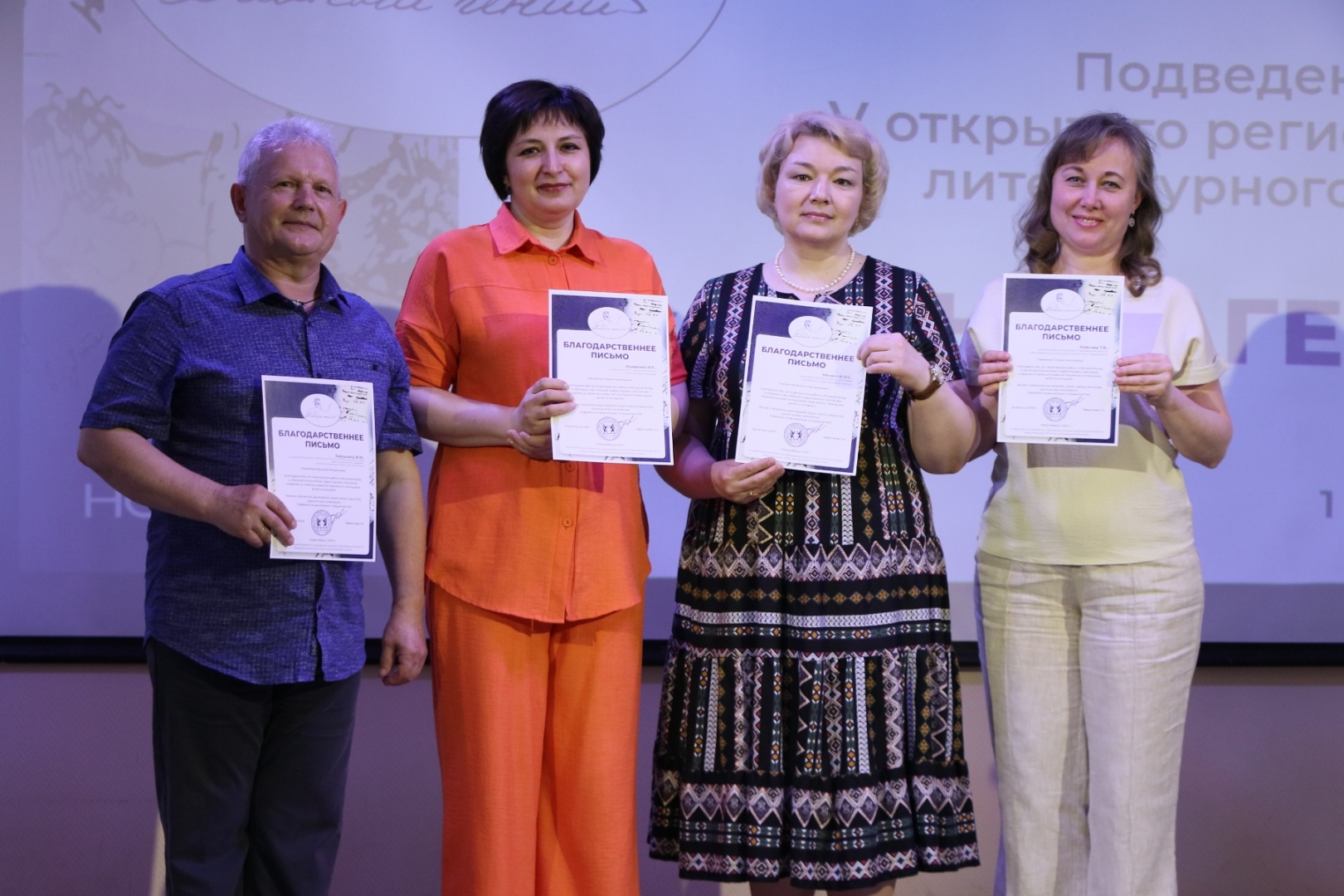 Благодарственные письма были вручены преподавателям, руководителям литературных студий, педагогам дополнительного образования за поддержку и создание условий для развития творческого потенциала детей и молодежи: Василию Закушняку, Татьяне Майснер, Ирине Кривенко, Инессе Мининой.