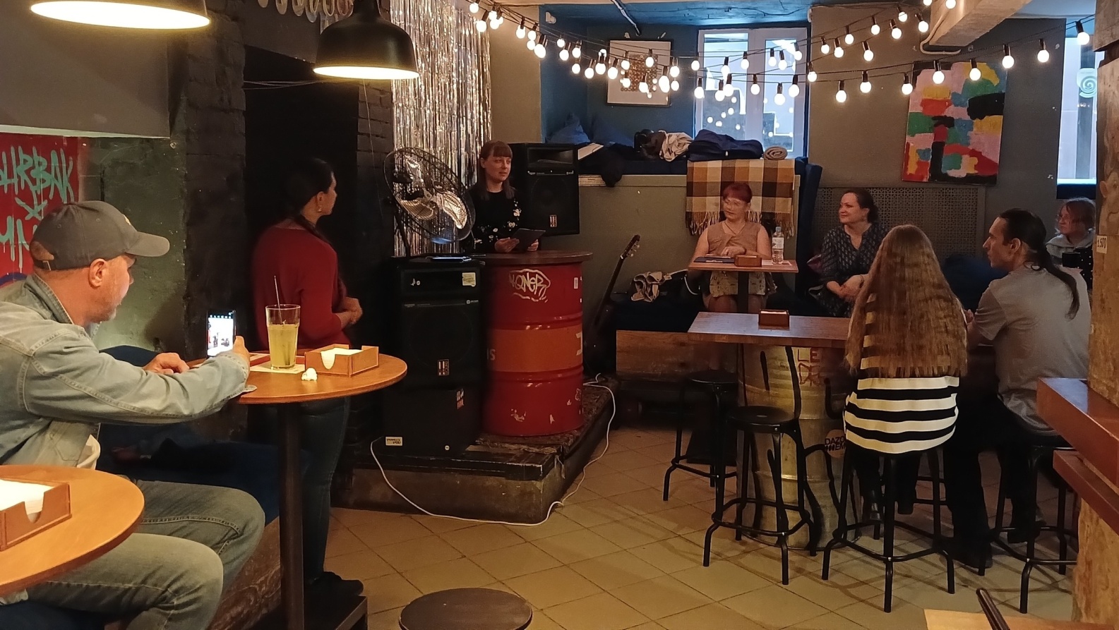 На арт-фестивале «Искусство горожан» клубу дали час на выступление, которое должно было проходить в Центральном парке Новосибирска. Но с самого утра над городом висели облака и шёл дождь. Это продолжалось несколько часов, и было не ясно, закончится ли дождь ко времени выступления. В связи с погодными условиями организаторы фестиваля предложили участникам клуба провести поэтический концерт в баре Memories. И эта встреча прошла в особой камерной обстановке!
