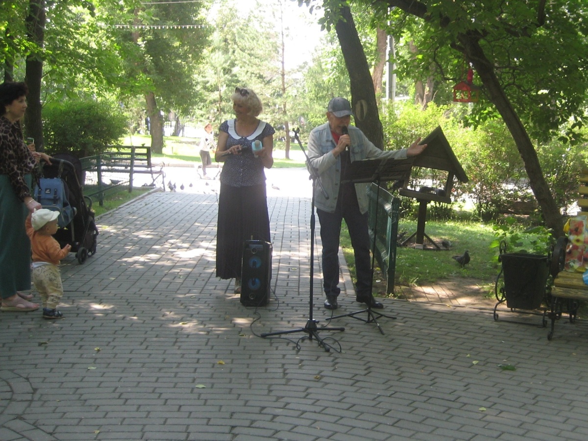 В воздухе разливались мелодии песен «Ах, лето» и «Я готов целовать песок» в исполнении Юрия Володина. И подходили, и застревали прохожие на поэтическом пятачке парка.
