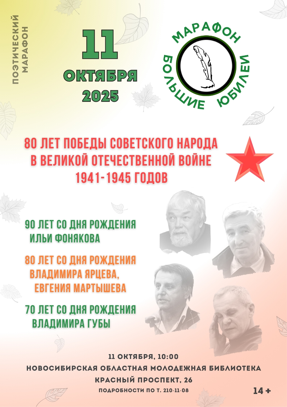 11 октября в Новосибирске пройдёт XIX Поэтический марафон «Большие юбилеи». Форма участия – только очная, с авторскими стихами выступающих.