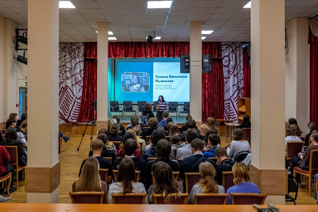 Презентация проекта «Ценностные маяки», посвященного творчеству сибирской сказительницы Таисьи Пьянковой, состоялась в Новосибирской областной молодёжной библиотеке 24 сентября. На этот раз она собрала почти полторы сотни человек – студентов сразу нескольких новосибирских учебных заведений. Они внимательно слушали рассказ библиотекаря о жизни и творчестве Таисьи Ефимовны, оставившей заметный след в сибирской, да и в целом – в российской литературе. В особенности Таисья Пьянкова известна благодаря своим сказам, став в этом жанре продолжателем таких сказителей, как Павел Бажов и новосибирец Александр Мисюрёв. Впрочем, она также сочиняла сказки для детей и писала взрослую лирику.