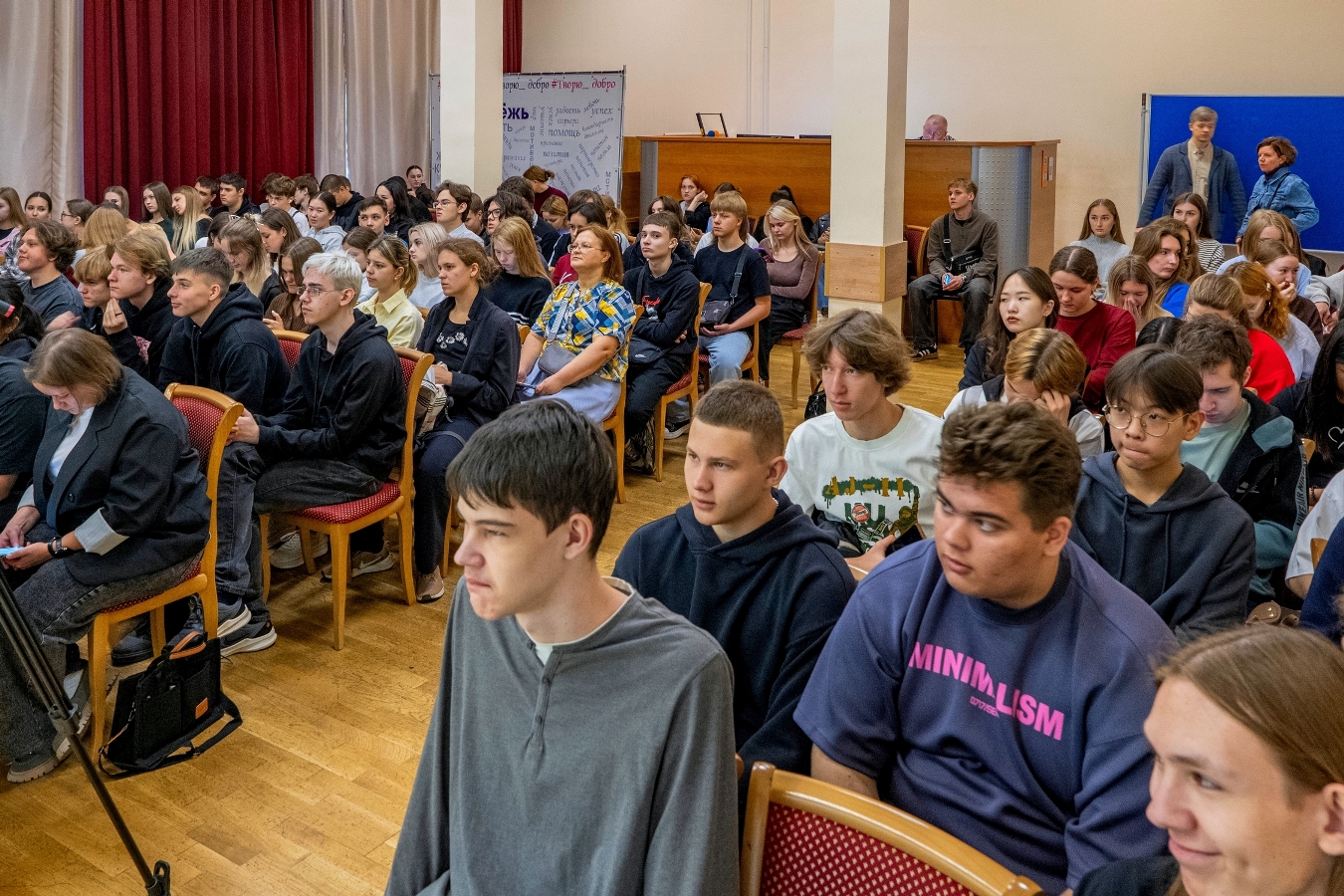 В рамках презентации для студентов была проведена викторина с вариантами ответов. Те из слушателей, кто правильно ответил на несколько вопросов получили закладки и блокноты с символикой проекта.