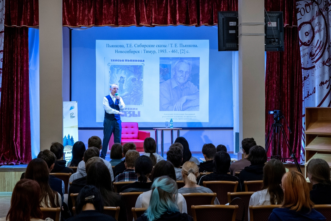 9 октября 2025 года в Новосибирской областной молодёжной библиотеке прошла лекция-разбор «Россыпь ценностей в сказах Т.Е. Пьянковой» в рамках проекта «Ценностные маяки». Лектором выступил Евгений Викторович Соснин, кандидат филологических наук, библиотекарь НГОНБ, специалист по сравнительно-историческому языкознанию, поэт и писатель.