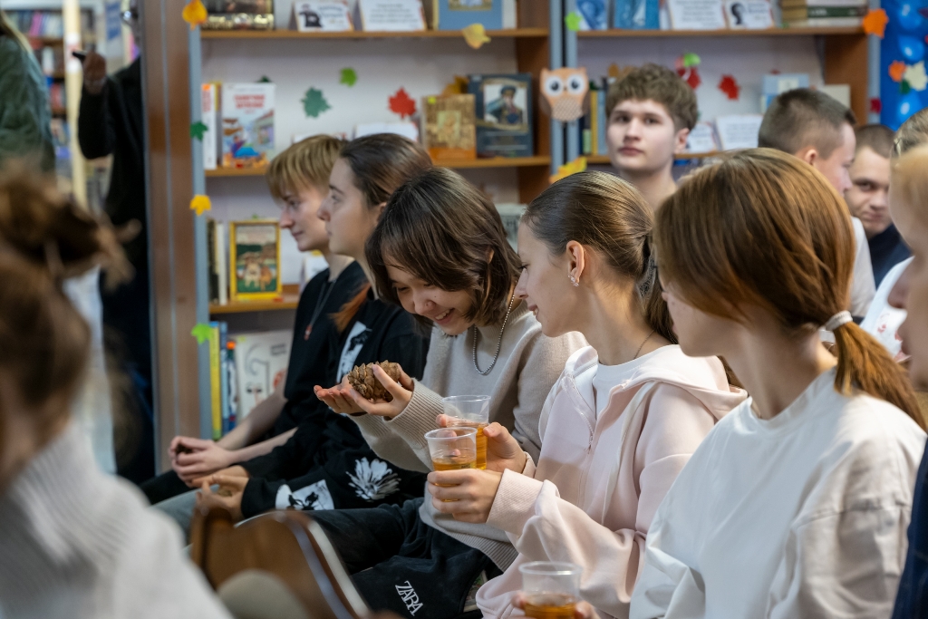 По доброй традиции, закрепившейся во время чтений, начинается каждое мероприятие с приветственного слова от начальника отдела художественной литературы Елены Павловны Ерастовой. Затем следует «атмосферная» часть с литературной игрой, антистрессовым массажем рук при помощи шишек и угощением травяным чаем.