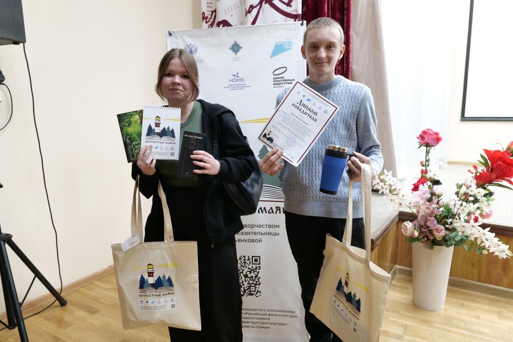 Торжественное награждение победителей и участников областного творческого конкурса «Корни и крылья» состоялось в Новосибирской областной молодёжной библиотеке. Конкурс был посвящён памяти сибирской сказительницы Таисьи Ефимовны Пьянковой, поэтому награждение сопровождалось целым рядом выступлений, вдохновлённых творчеством замечательного автора. Открыл мероприятие творческий номер молодых артистов – студентов Новосибирского государственного театрального института. Ребята представили зрителям две песни из музыкального спектакля «Миливонщица», поставленного по одноимённому произведению Таисьи Пьянковой.