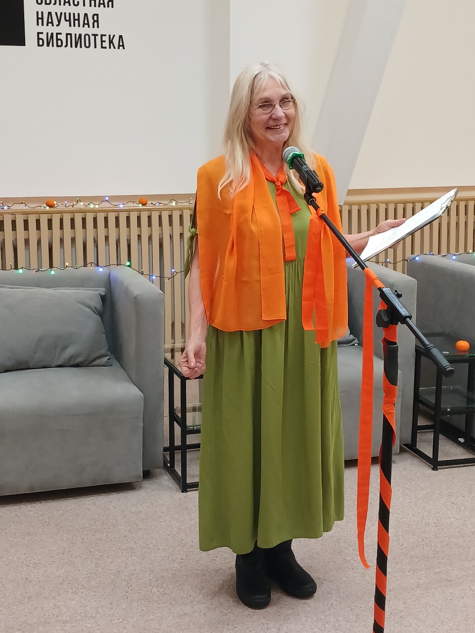 Затем начался открытый микрофон, в котором авторы, сменяя друг друга, делились своим оранжевым настроением и позитивным жизнеутверждающим творчеством.