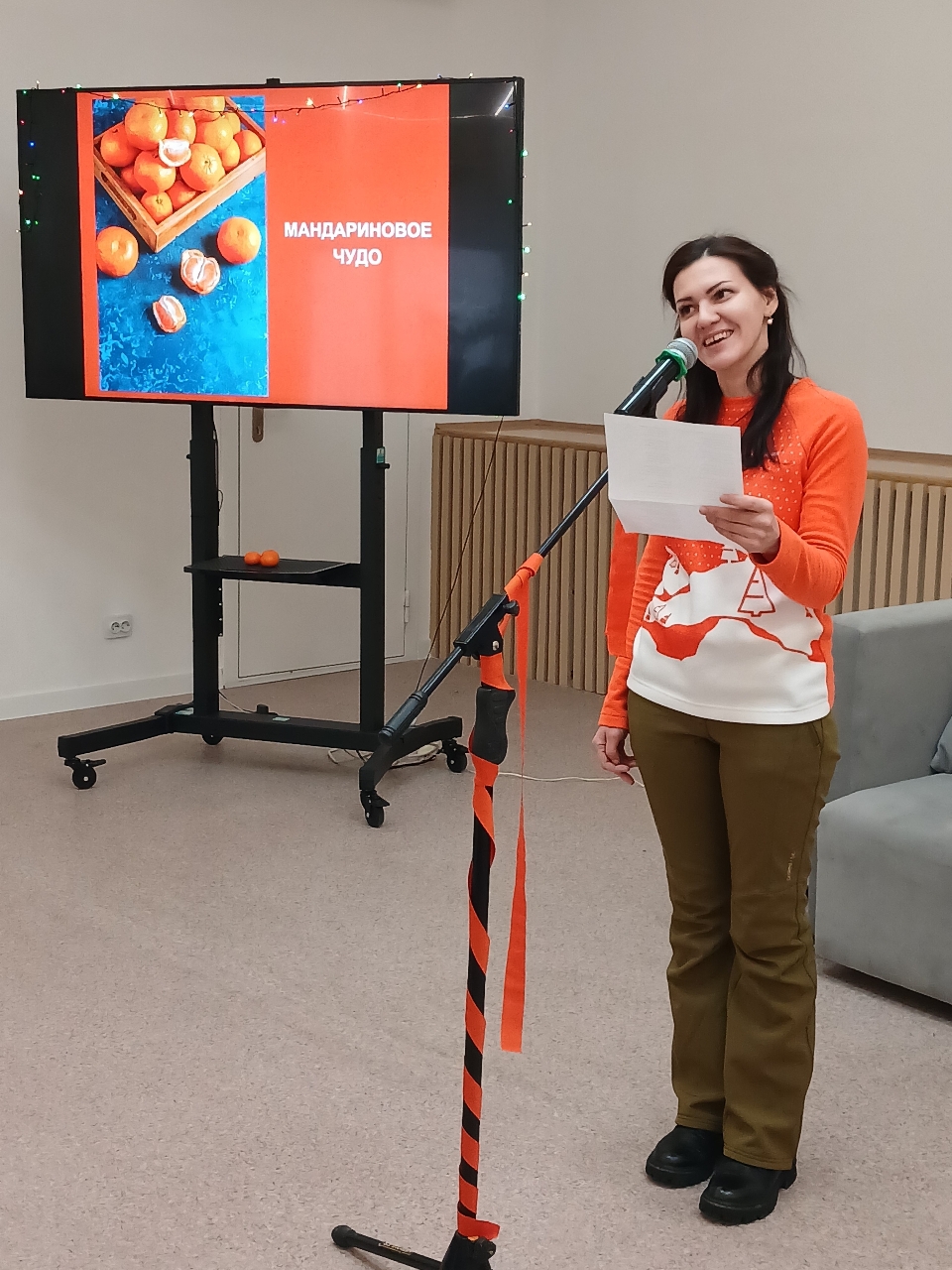 В конце встречи никому не хотелось расходиться. Участники фотографировались, делились эмоциями и ели мандарины. Атмосфера была наполнена радостным, объединяющим настроением и запахом мандаринов.