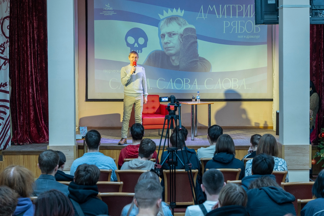 21 января в Областной молодёжной библиотеке прошла встреча с поэтом и драматургом Дмитрием Рябовым.