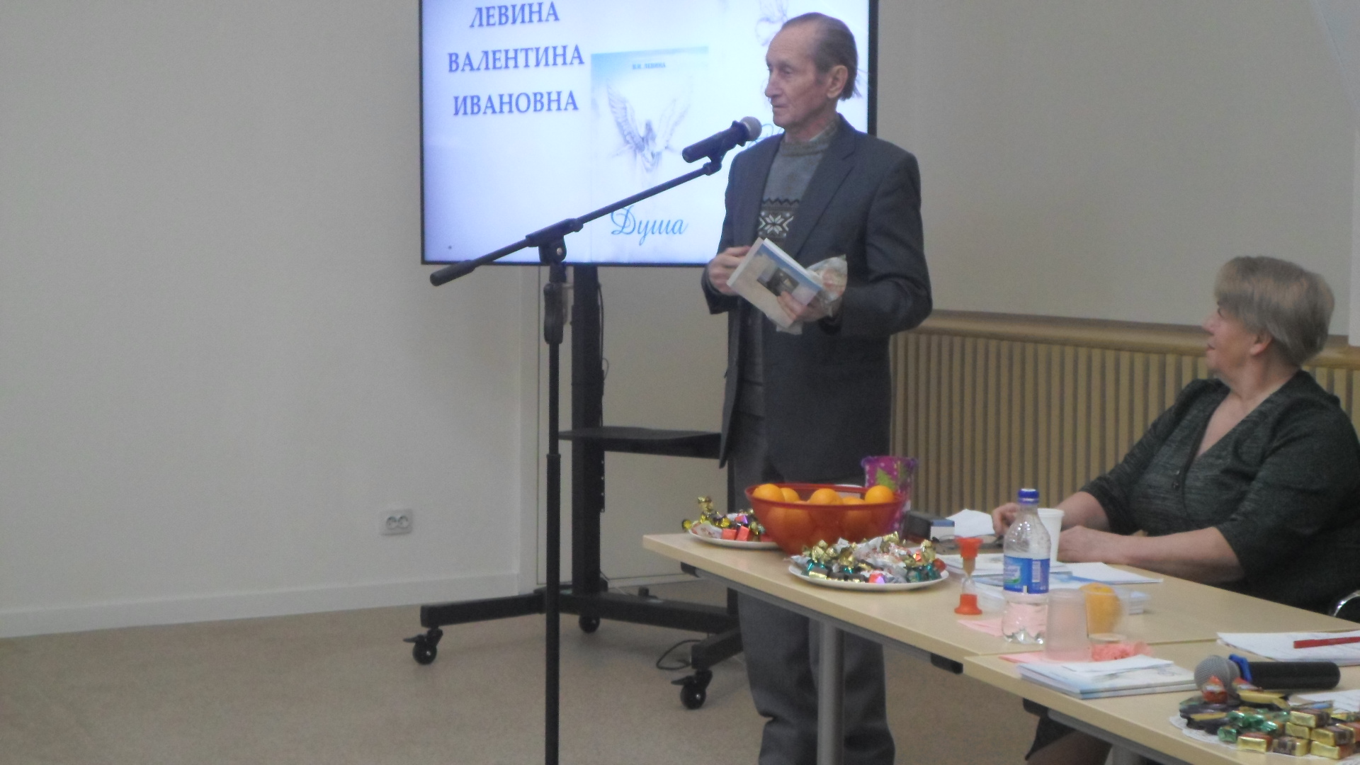 Также в рамках встречи прошла презентация трёх новых книг Валентины Ивановны Левиной-Ермак. Евгений Фёдорович успел подержать в руках только одну, самую первую её книгу «Душа».