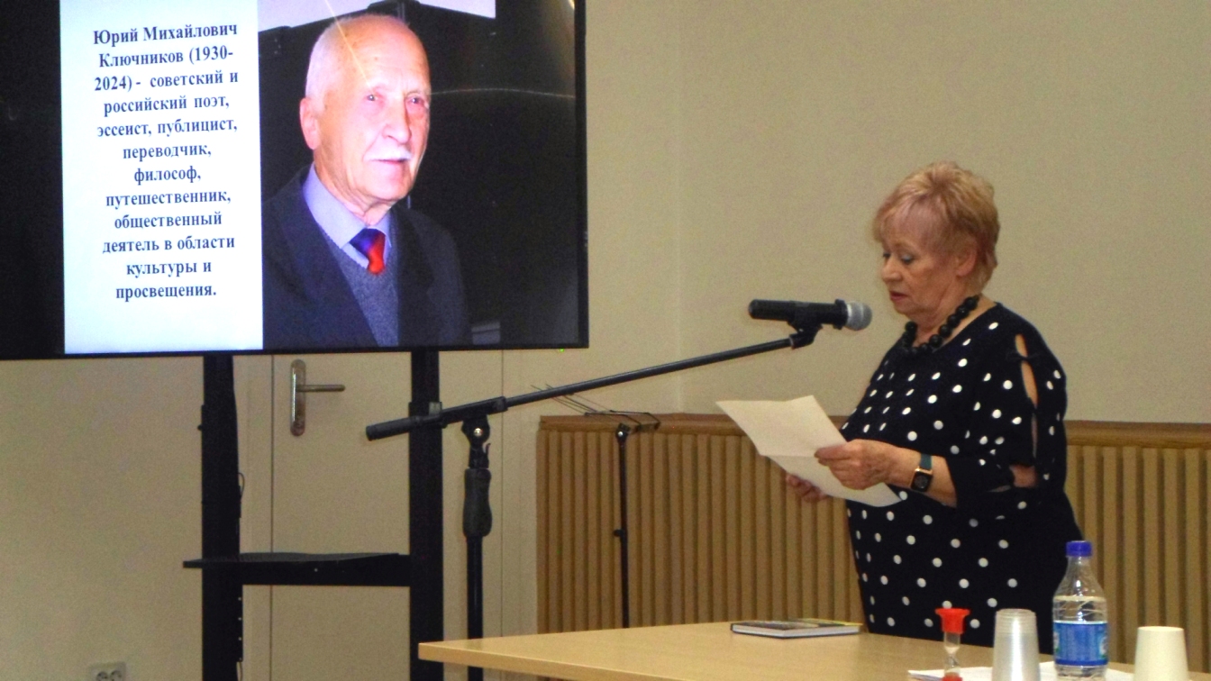 Первую часть мероприятия посвятили памяти Юрия Ключникова — новосибирского поэта, переводчика, путешественника, члена Союза писателей, Союза журналистов России, академик Петровской Академии наук и искусств. Вот уже два года, как Юрия Михайловича нет с нами.