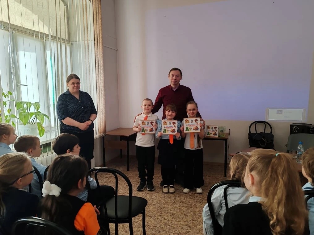 Первоклассникам выпала уникальная возможность пообщаться с настоящим поэтом и писателем. Они не только услышали стихотворения и сказки в оригинальном исполнении автора, но и после чтений поучаствовали в увлекательном конкурсе на лучший оригинальный вопрос.
