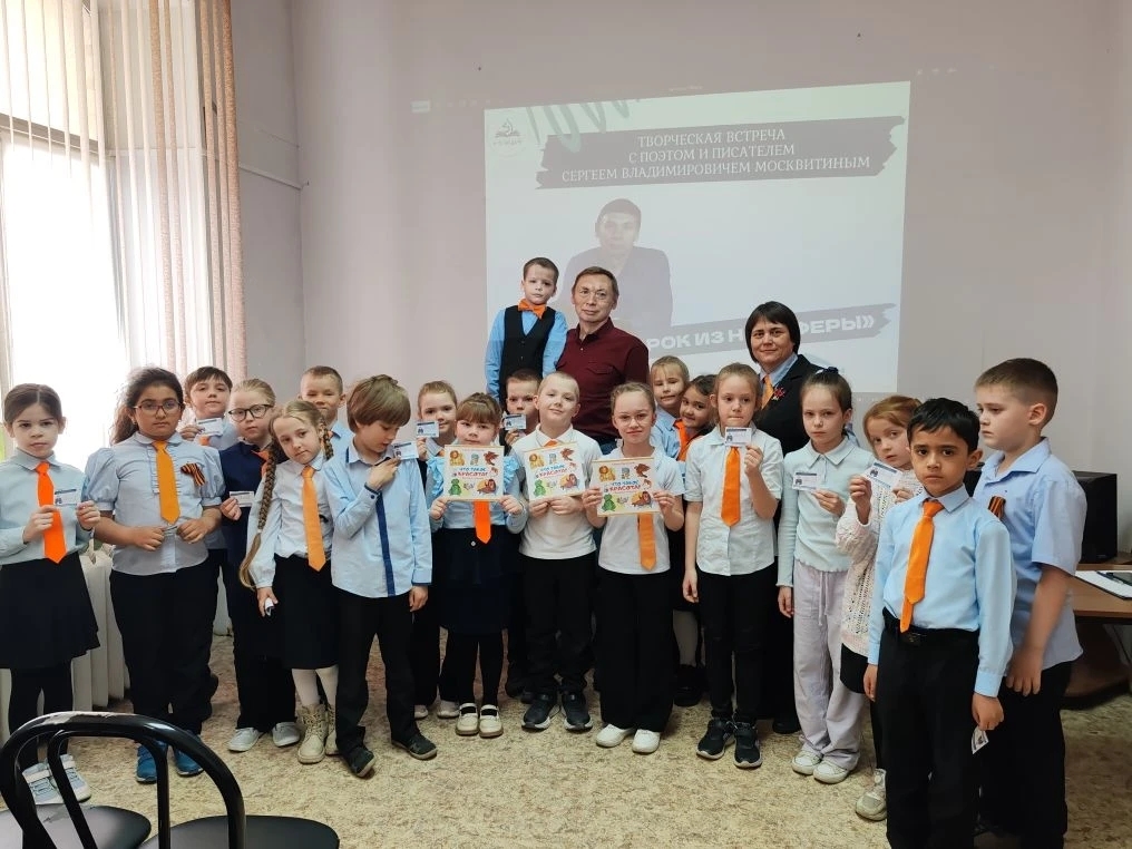 27 апреля в Центральной городской детской библиотеке им. А. П. Гайдара состоялась творческая встреча с Сергеем Владимировичем Москвитиным – поэтом, писателем, членом союза писателей РФ, членом Союза журналистов РФ. Участниками мероприятия стали ученики 1 класса школы №160.