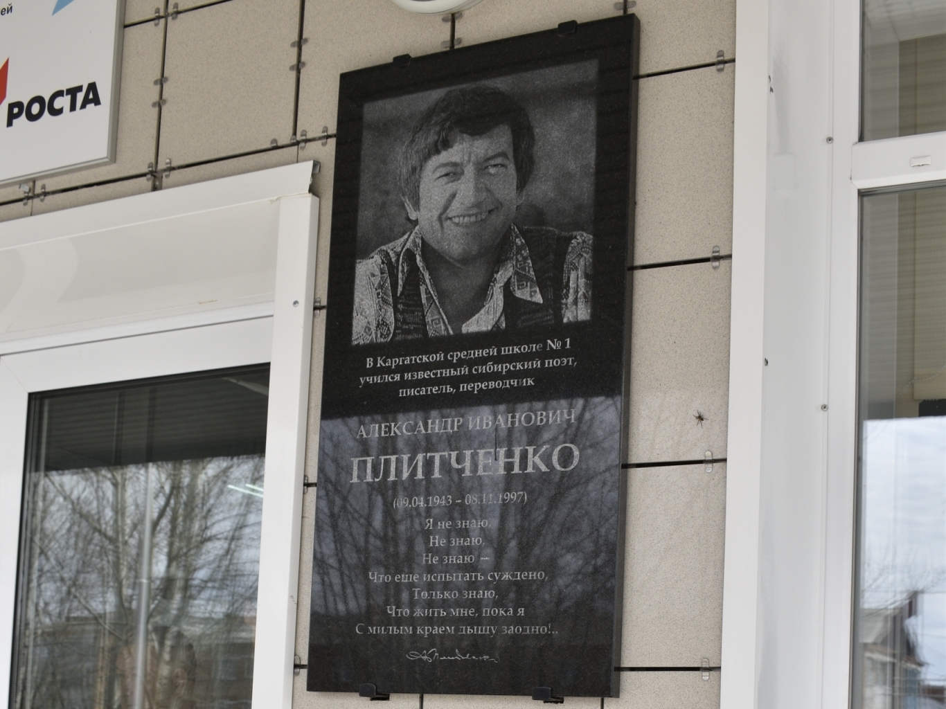 Открытие мемориальной доски состоялось в апреле 2019 года в рамках второго регионального литературного фестиваля «Сто небес», посвящённого памяти Александра Плитченко. Доска установлена на школе №1 города Каргата, которую окончил Плитченко.