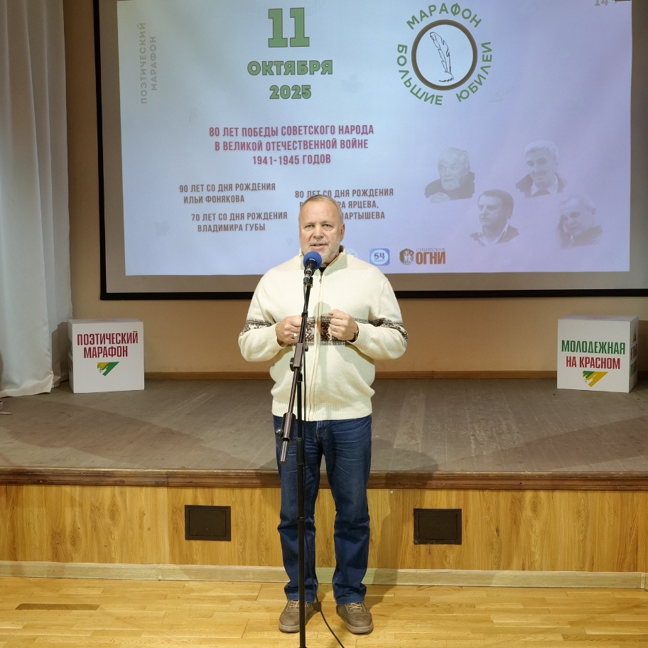 Традиционный, 18-й по счёту Новосибирский поэтический Марафон «Большие юбилеи» прошёл в Новосибирской областной молодёжной библиотеке в начале октября. Он собрал на своей сцене более 60 самобытных авторов. Целый день звучали стихи новосибирских поэтов – их можно было видеть и слышать не только очно, но и в прямой трансляции.